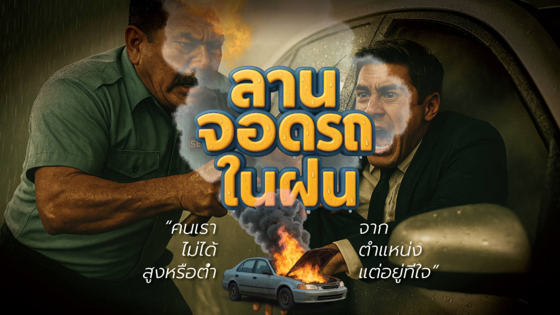 ปกรณ์ (ผู้บริหาร) / ศักดิ์ (พนักงานทำความสะอาด) ปกรณ์ด่าศักดิ์เสียงดัง คนอย่างแกมีค่าแค่ถูพื้น! แล้วถีบถังน้ำใส่จนล้ม รถหรูของปกรณ์ไหลชนกำแพง ไฟลุก เขาติดอยู่ข้างใน ศักดิ์ที่เพิ่งโดนด่า เสี่ยงชีวิตฝ่าควันช่วยเขาออกมา คลิปวงจรปิดถูกแชร์ คนทั้งบริษัทชื่นชมศักดิ์ ปกรณ์ยอมขอโทษต่อหน้า