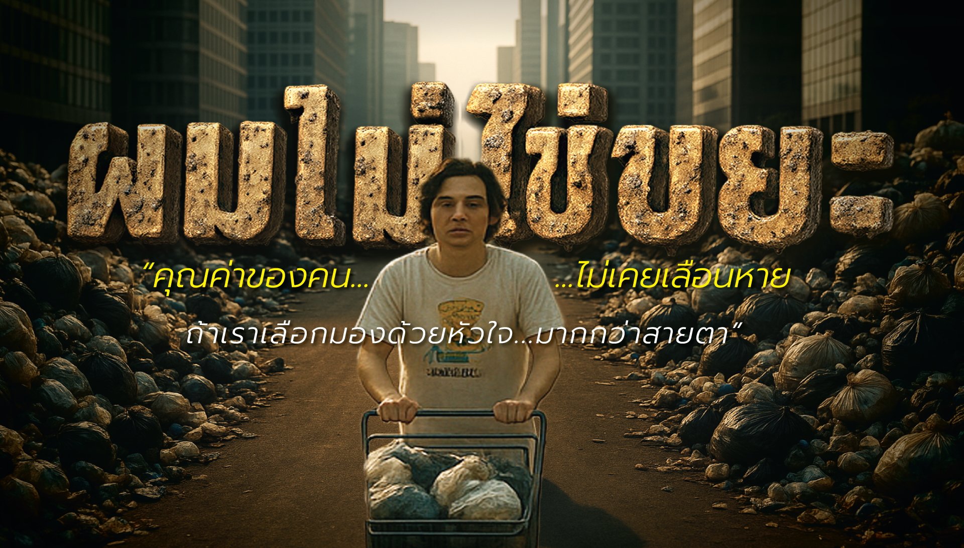 ท่ามกลางตึกออฟฟิศหรูและรถหรูเรียงราย เด็กหนุ่มเก็บของเก่าอย่าง เติ้ล ถูกสายตาและคำพูดเหยียดหยามว่า ไม่ต่างจากขยะ แต่คำว่า NOT TRASH บนเสื้อเก่า คือสัญลักษณ์แห่งศักดิ์ศรีที่เขายึดมั่น