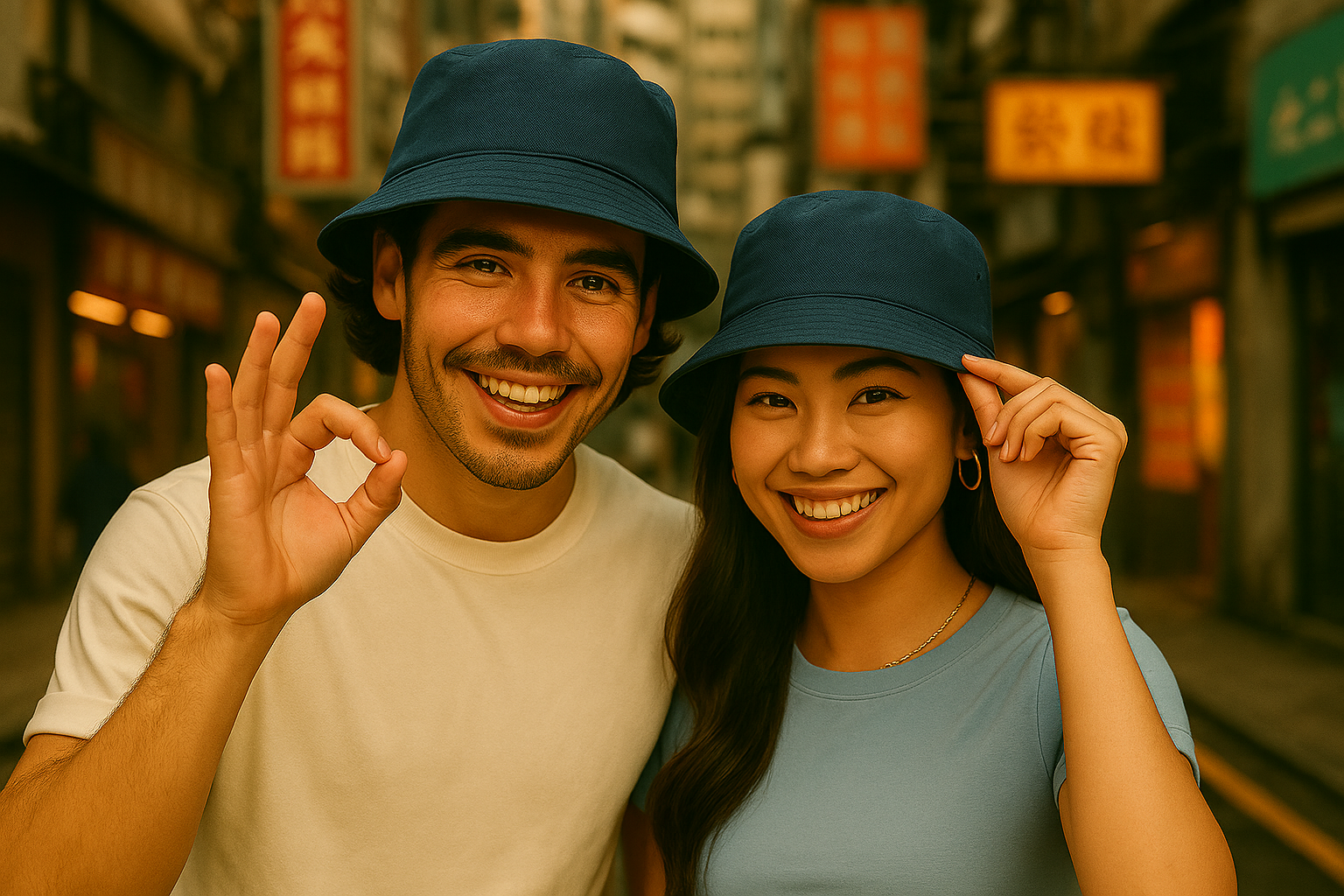 Texture: เย็บจับจีบชิ้นหน้าหมวก หมวก 5 ชิ้น และปีกหมวกโค้งปานกลาง
