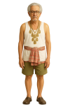 ບຸກຄະລິກກະພາບ : - ເປັນອະດີດຄູສອນຊັ້ນປະຖົມ ກາຍເປັນຄົນງຽບໆ, ມີຄວາມຮູ້ໃນຊອຍ. ລາວມັກນັ່ງຢູ່ໃຕ້ເຮືອນ, ສັງເກດທຸກຄົນ, ແລ້ວເວົ້າຄໍາດຽວທີ່ປ່ຽນຊີວິດ.