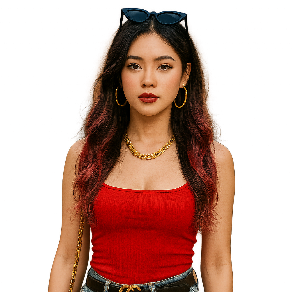 ນາງແຕ່ງຕົວຢ່າງກ້າຫານ, ໃສ່ເສື້ອຄຸມ, ເກີບສົ້ນຕີນ, ແລະຖົງຍີ່ຫໍ້ປອມທີ່ມີຄຸນນະພາບສູງ. ນາງເອົາກິ່ນຫອມຂອງເຂົ້າຫນົມຫວານ.