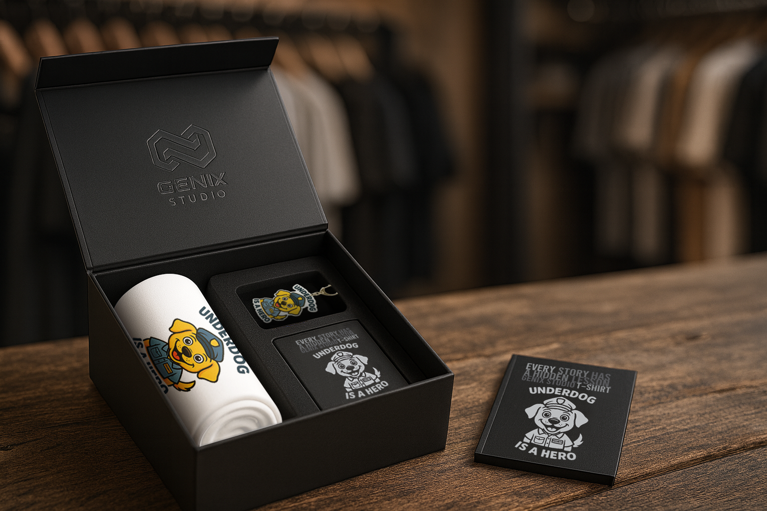 - โลโก้: พิมพ์หรือรีดร้อนคุณภาพสูง "GENIX STUDIO"